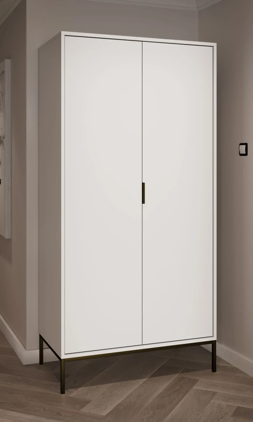 - Nowoczesny design - Biały korpus w połączeniu z czarnymi detalami na uchwytach oraz stalowym stelażu malowanym proszkowo nadaje szafie elegancki, nowoczesny wygląd, który doskonale pasuje do różnych stylów wnętrzarskich.
