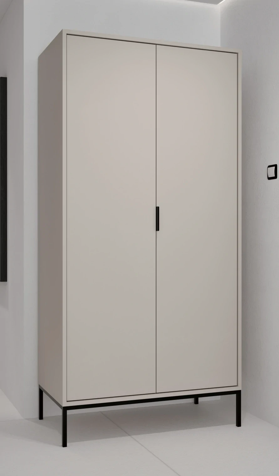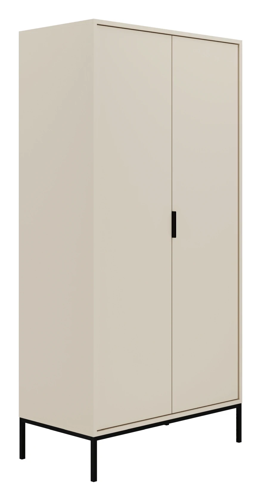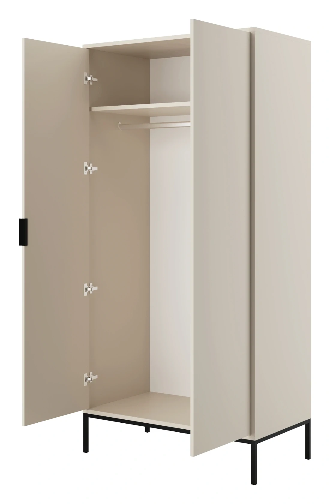- Nowoczesny design - Korpus w kolorze kaszmiru w połączeniu z czarnymi detalami na uchwytach oraz stalowym stelażu malowanym proszkowo nadaje szafie elegancki i nowoczesny wygląd, który doskonale komponuje się z różnymi stylami wnętrzarskimi, dodając wnętrzu wyrafinowania.
