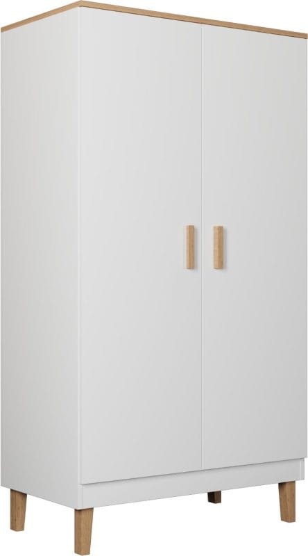 Szafa Denver to nowoczesna propozycja praktycznej szafy do salonu, pokoju dziennego, sypialni czy przedpokoju z serii mebli Denver. Szafa posiada 2 drzwi, za którymi znajduje się pięć pojemnych półek oraz przestrzeń na wieszaki. Prezentowana szafa został wykonana w stylu skandynawskim, co sprawia, że sprawdzi się idealnie we współczesnych wnętrzach ze względu na jej nowoczesny design i minimalizm jednocześnie.
