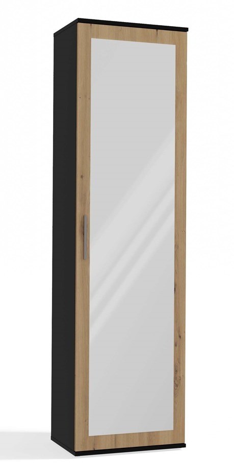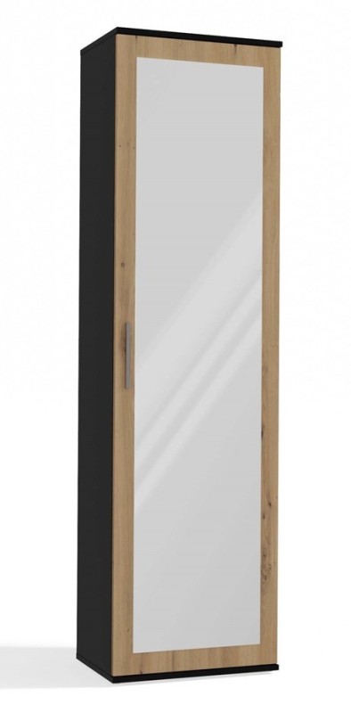 Szafa Duo wąska nowoczesna z lustrem do przedpokoju 50 cm antracyt/dąb artisan