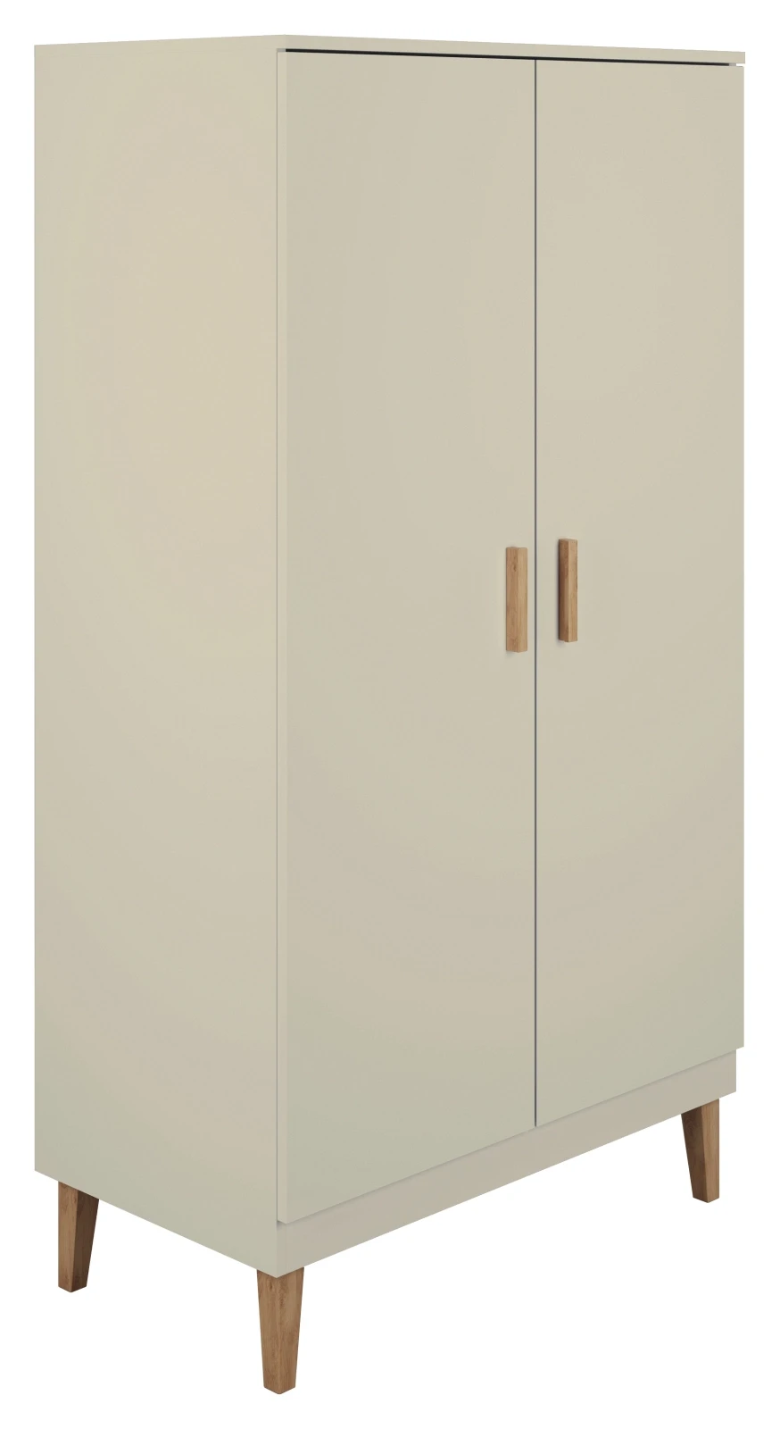 Szafa Kubi to nowoczesna propozycja praktycznej, dwudrzwiowej szafy do sypialni z serii mebli do pokoju dziecięcego KUBI. Szafa wykonana została z wysokiej jakości matowej płyty MDF o grubości 18 mm. Nogi, tak jak i ergonomiczne uchwyty, wykonane są z lakierowanego litego drewna dębowego. Solidna budowa gwarantuje trwałość oraz bezpieczeństwo użytkowania. Szafa jest dwudrzwiowa i posiada pięć przestronnych półek oraz solidny, metalowy drążek na wieszaki. Mebel wyposażony został w system cichego domyku. Do szafy dołączone są kątowniki mocujące mebel do ściany, by był on bezpieczny i nie przechylił się po otwarciu drzwiczek. Prezentowana szafa została wykonana w stylu skandynawskim, co sprawia, że sprawdzi się idealnie we współczesnych pokojach dziecięcych jak i młodzieżowych ze względu na jej nowoczesny design i minimalizm jednocześnie.