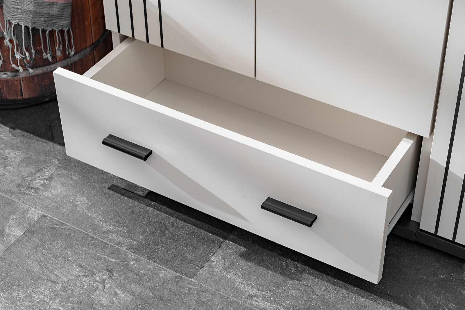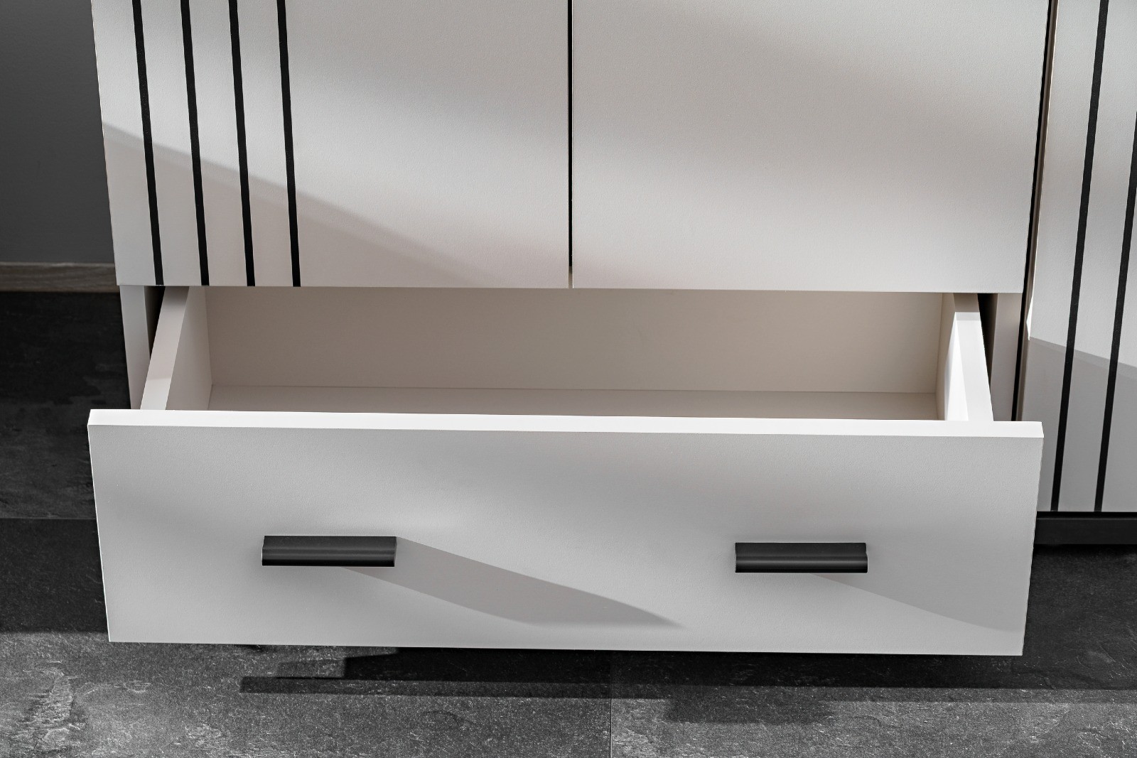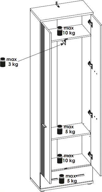 - Funkcjonalne wnętrze - praktyczne półki, drążek i szuflada ułatwiają organizację garderoby.