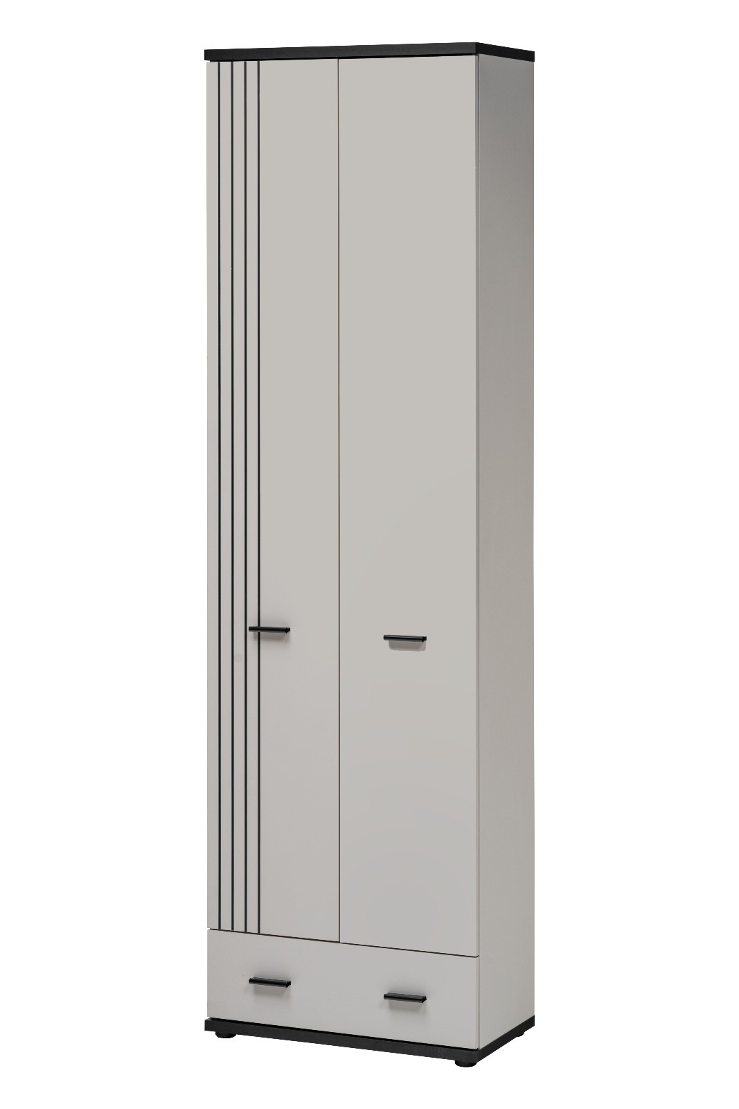 Szafa Hugo to idealne rozwiązanie do nowoczesnych wnętrz, które łączy elegancję z funkcjonalnością. Połączenie koloru cashmere z kontrastującą czernią tworzy stylowy efekt, który doskonale wpisuje się w modne aranżacje. Dzięki praktycznym półkom, drążkowi i dodatkowej szufladzie szafa zapewnia optymalną przestrzeń do przechowywania ubrań i akcesoriów. Matowe wykończenie dodaje jej elegancji i ułatwia utrzymanie czystości.