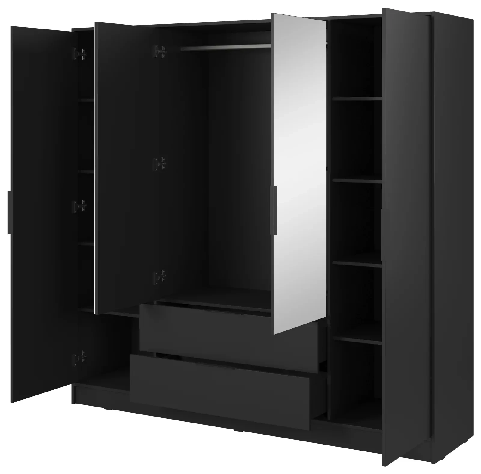 Szafa Kelly L 206 cm czterodrzwiowa z lustrem do sypialni czarny