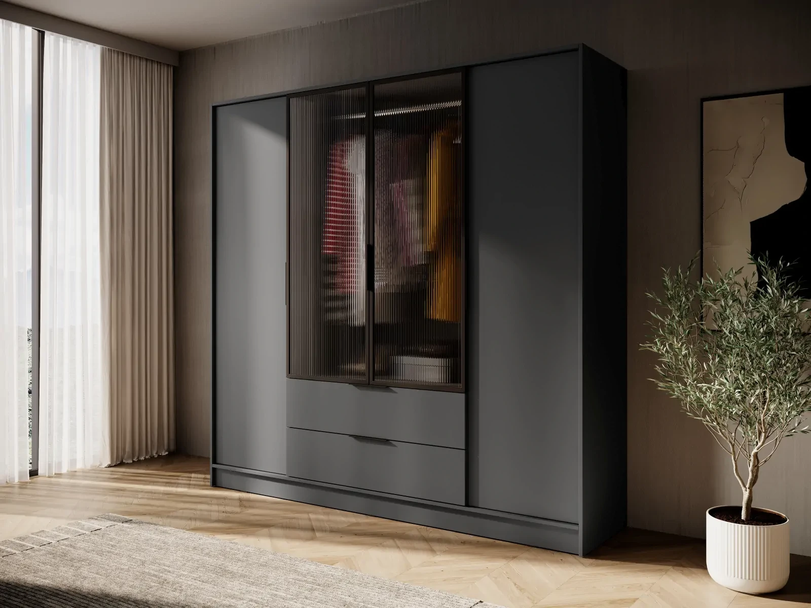 Szafa Kelly RM 206 cm przeszklona do sypialni grafit