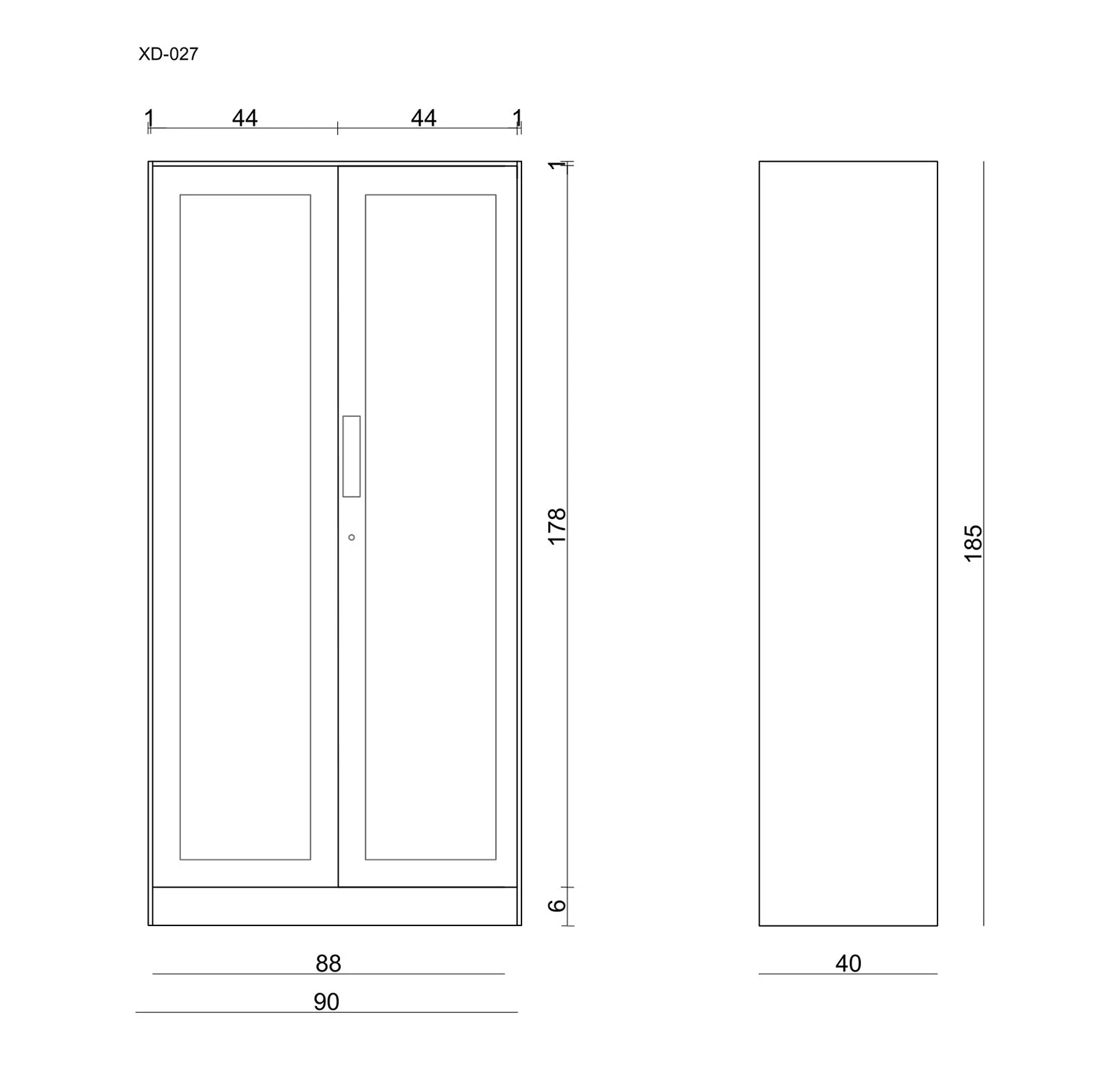 Szafa metalowa XD-027 to praktyczny mebel, który z powodzeniem znajdzie swoje miejsce w biurze, gabinecie czy pracowni, gdzie dokumenty potrzebują swojego stałego miejsca. Szafa XD-027 wykonana została z wysokiej jakości materiałów, dzięki czemu posłuży przez długie lata. Jej stelaż wykonany został z malowanego proszkowo metalu, dodatkowo mebel został wyposażony w zamykane na klucz drzwiczki, dzięki temu przechowywane w nim przedmioty będą bezpieczne. Ten model wyróżnia się szklanymi frontami oraz łatwym otwieraniem za pomocą długiego i wygodnego uchwytu.