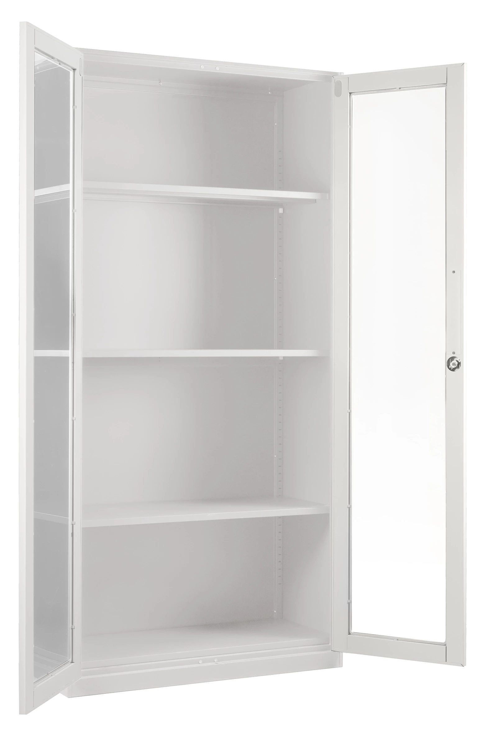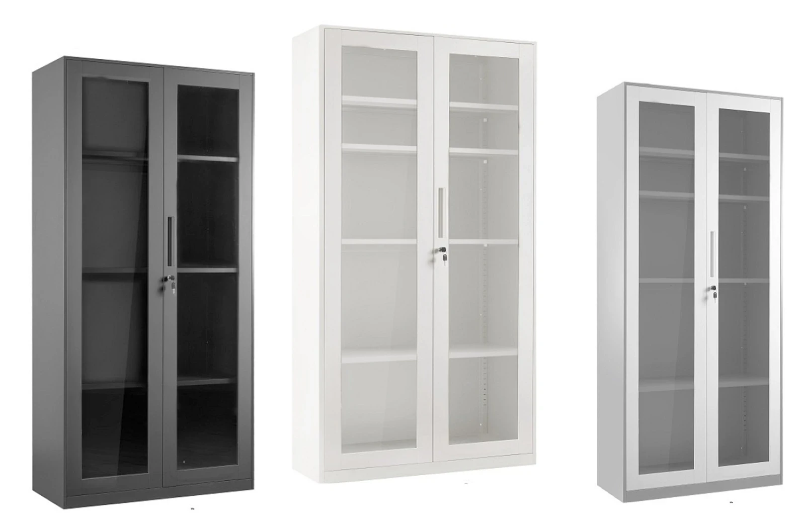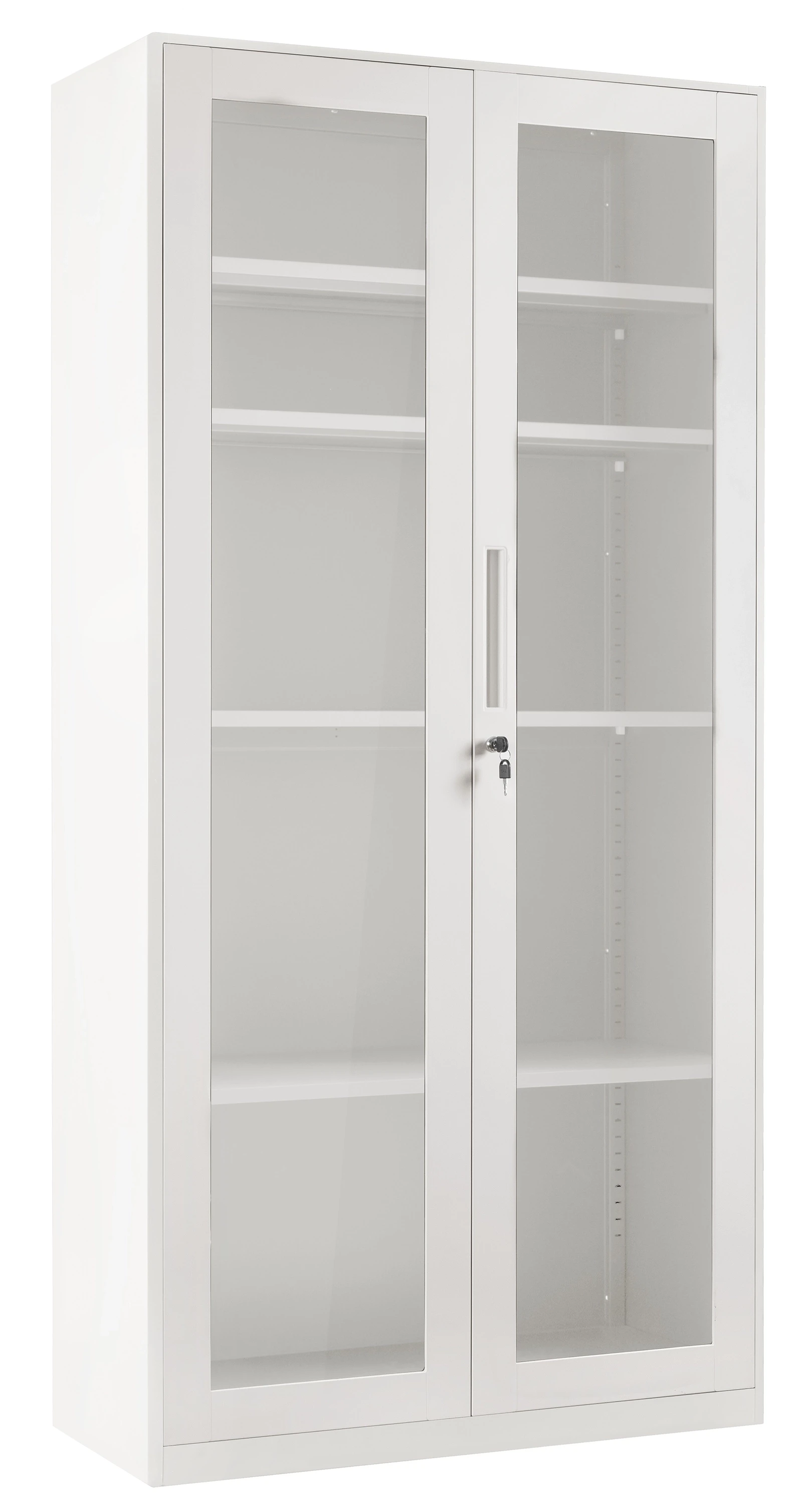 Szafa metalowa XD-027 ze szklanymi frontami zamykana na klucz Biała