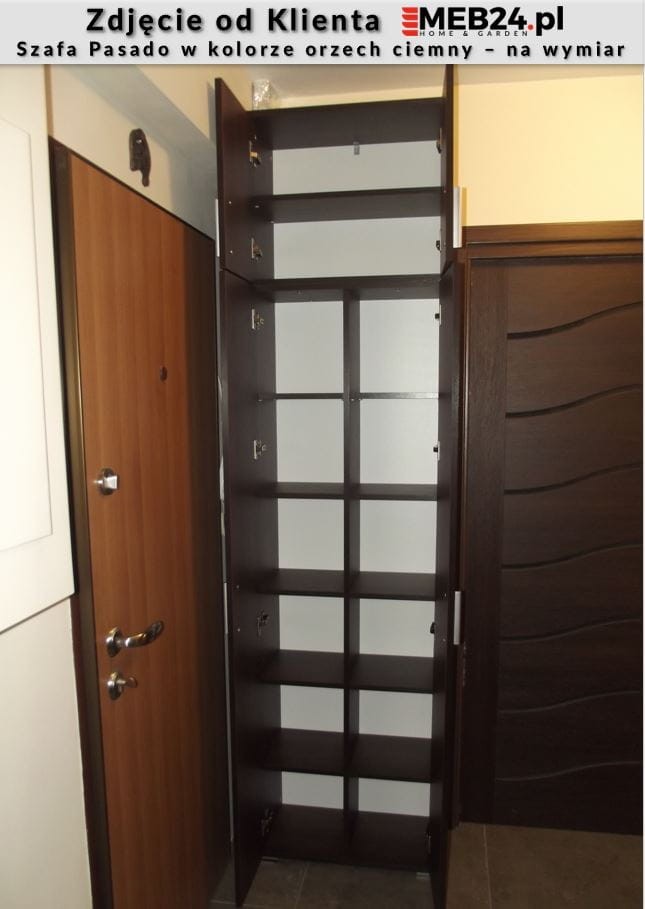 Pasado to klasyczna i uniwersalna szafa z półkami, która może pełnić zarówno funkcję szafki na buty, jak również miejsca do przechowywania ubrań, torebek i innych elementów garderoby. Dedykowana jest jako szafka na buty do przedpokoju ale świetnie sprawdzi się też jako miejsce do przechowywania odzieży w sypialni czy garderobie. Szafa Pasado posiada 8 półek co daje aż 10 przestrzeni użytkowych, które łącznie mogą pomieścić do 15 par butów. Szafa dostępna jest w wielu wariantach kolorystycznych co pozwala na dopasowanie jej do indywidulanych preferencji i wystroju pomieszczenia w którym zostanie ustawiona. Szafa na buty z półkami to praktyczne rozwiązanie do każdego przedpokoju pozwalające zaoszczędzić miejsce i dobrze zagospodarować przestrzeń.