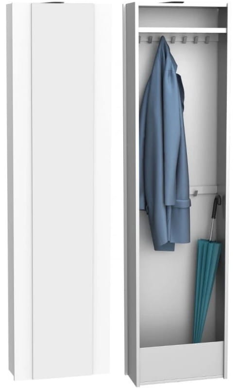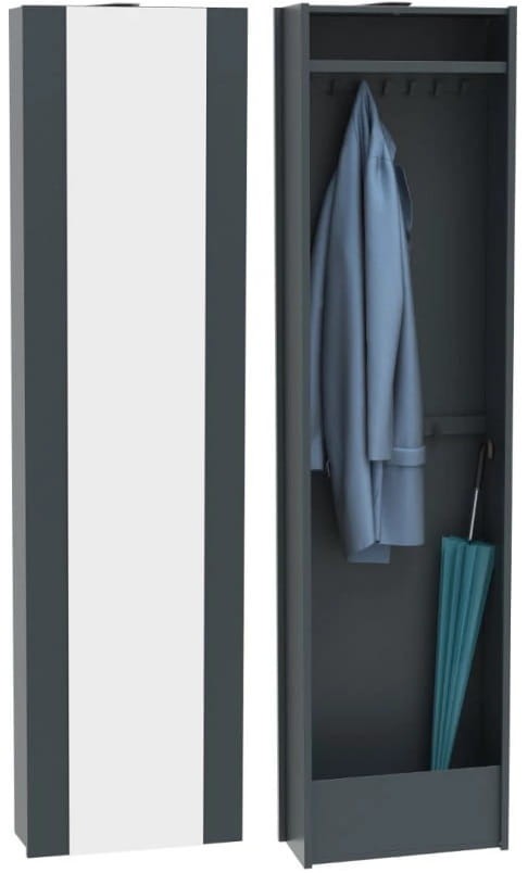 Cube to praktyczna i trwała szafa do przechowywania, w której znajdzie się miejsce na okrycia wierzchnie, torebki, parasole czy inne drobne przedmioty. Prezentowany model szafy został stworzony po to, żeby dzięki obrotowemu mechanizmowi zaoszczędzić miejsce w przedpokoju oraz pozwolić na funkcjonalne zagospodarowanie przestrzeni. Szafa wyposażona została w 12 haczyków oraz półkę w górnej części. Szafa została wykonana w całości z metalu i polakierowana na jeden z 3 dostępnych kolorów. Front szafki dodatkowo posiada funkcjonalne lustro, które optycznie powiększy pomieszczenie i przyda się, aby przejrzeć się przed wyjściem. Kolekcja Cube zawiera lekkie i minimalistyczne bryły, które odnajdą się w każdym przedpokoju, są to szafka na buty, komoda, wieszak, lustro oraz szafa obrotowa.