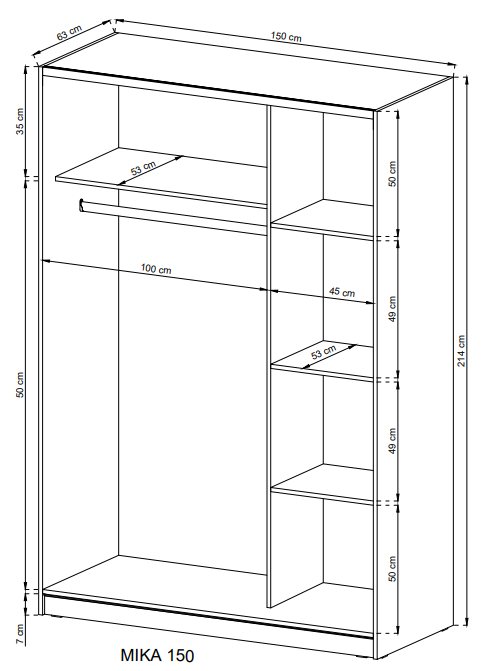 Szafa przesuwna Mika I to praktyczna propozycja szafy, która sprawdzi się m.in. w sypialni, garderobie lub przedpokoju. Seria Mika I występuje w kilku kolorach oraz rozmiarach, a każdy z nich pomieści mnóstwo ubrań. Ogromnym atutem szafy są lustra na obu drzwiach, które optycznie powiększą pomieszczenie oraz pozwolą ocenić założoną na siebie kreacje :) Szafa zaprojektowana i wykonana została w Polsce co jest gwarancją jakości - Wspieraj