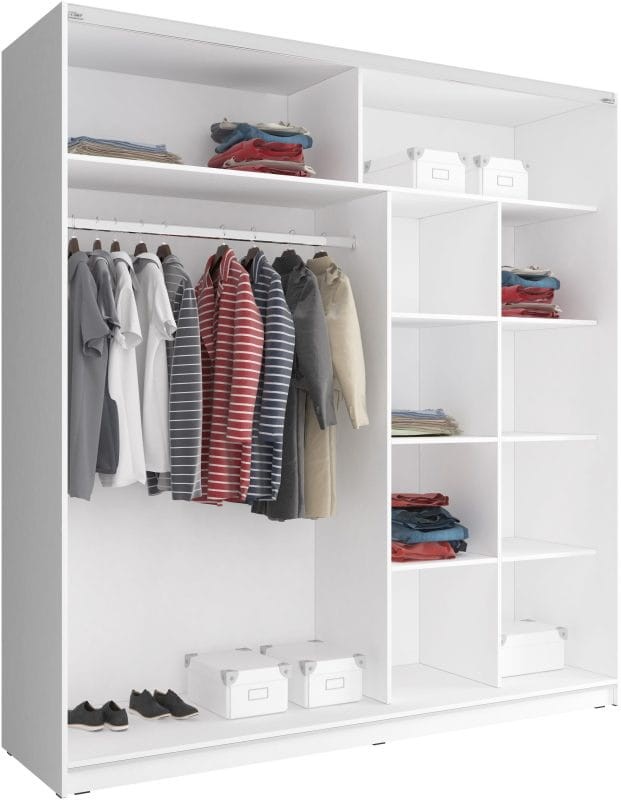 Szafa przesuwna Mika VI to praktyczna propozycja szafy, która sprawdzi się m.in. w sypialni, garderobie lub przedpokoju. Seria Mika VI występuje w kilku kolorach oraz rozmiarach, a każdy z nich pomieści mnóstwo ubrań. Ogromnym atutem szafy są drzwi przesuwne, które umożliwiają łatwy dostęp do wnętrza nawet w wąskich korytarzach. Szafa zaprojektowana i wykonana została w Polsce co jest gwarancją jakości - Wspieraj