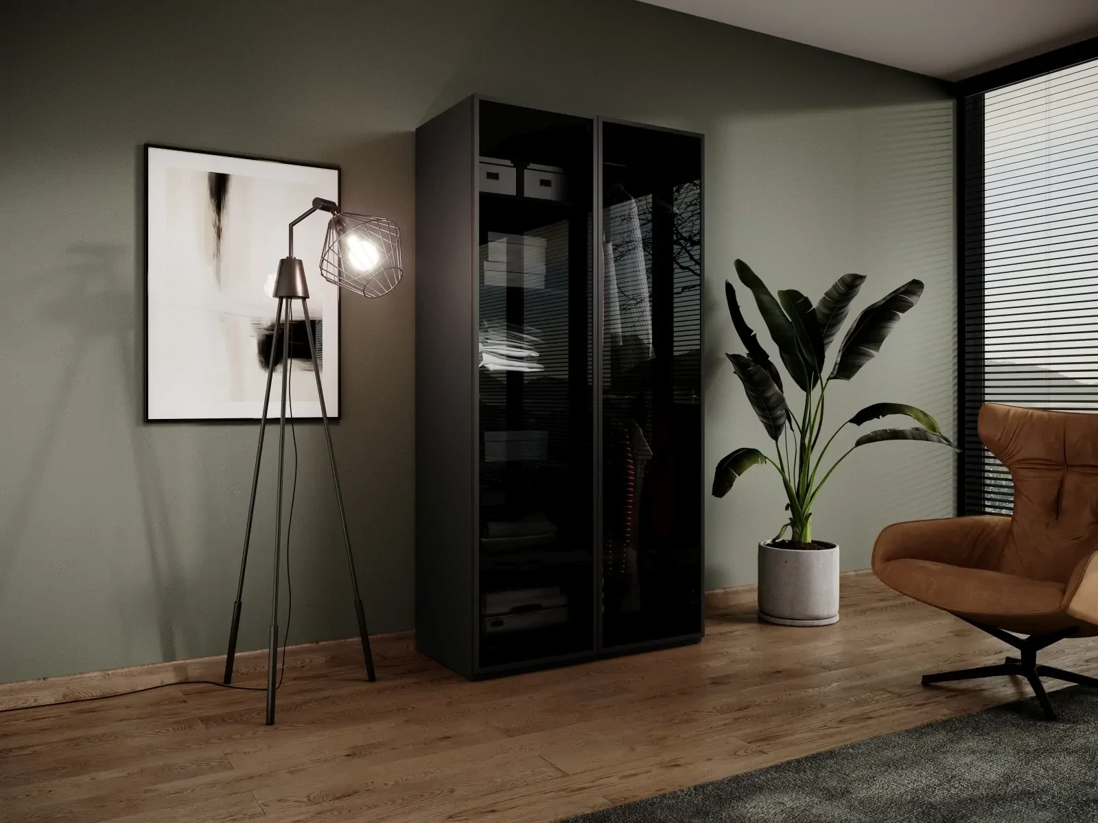 Szafa przeszklona Sandbox Antisol 100 cm z drążkiem do sypialni czarny grafit/szkło przyciemnione