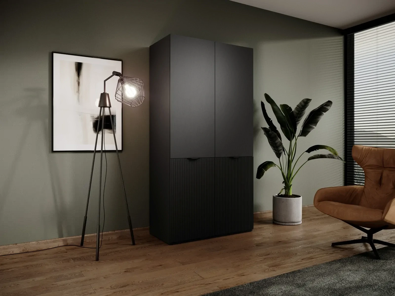 Szafa Sandbox Nova 100 cm ryflowana z drążkiem do sypialni czarny grafitowy