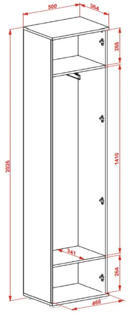 Wnętrze słupka zostało zaprojektowane z myślą o wygodnym przechowywaniu – drążek umożliwia zawieszenie odzieży, a półki pomagają w organizacji ubrań i akcesoriów. Wykonanie z laminowanej płyty meblowej gwarantuje trwałość oraz łatwość w utrzymaniu czystości.