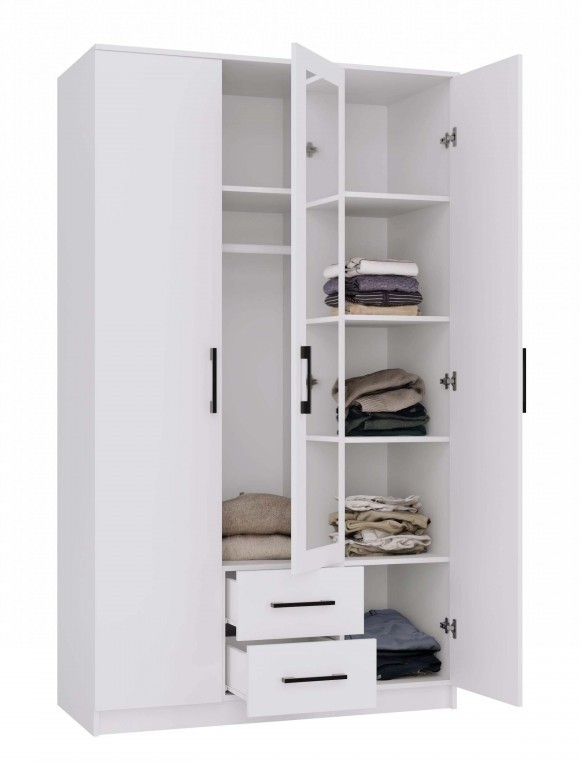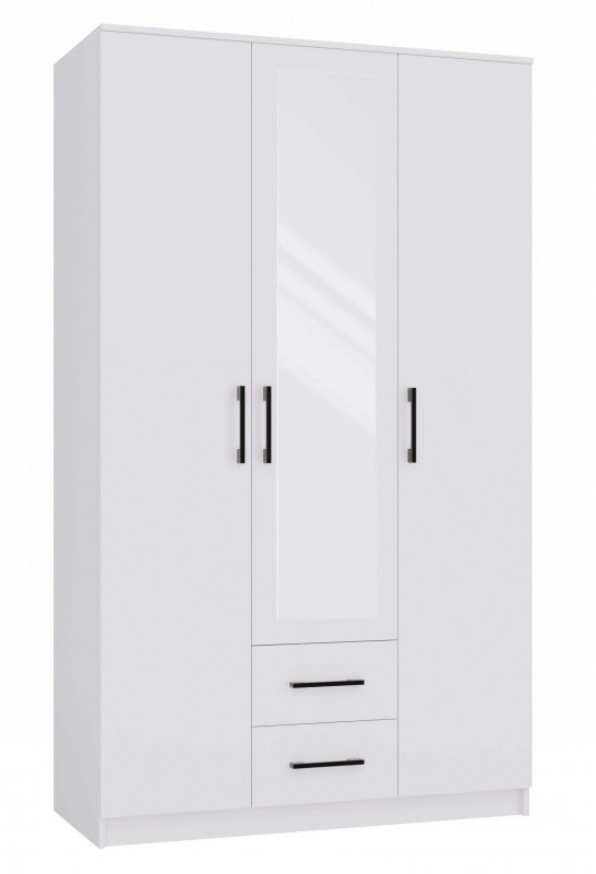 Szafa trzydrzwiowa Romana z lustrem i szufladami do sypialni 120 cm biała