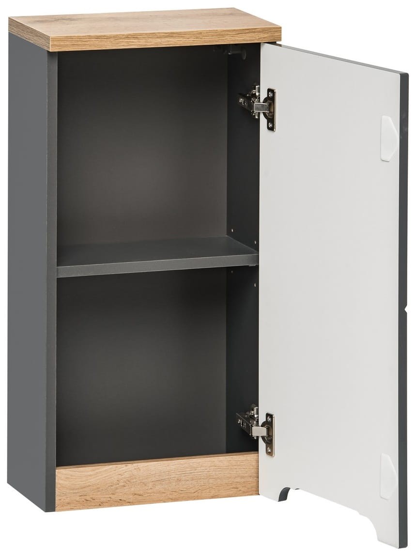 Szafka górna BALI GRAFIT 830 to stylowa propozycja z kolekcji mebli łazienkowych Bali cechująca się stylową i prosta formą. W kolekcji znajdziemy meble w różnych rozmiarach, dzięki czemu uda się z nich skomponować zestaw pasujący tak do większych jak mniejszych łazienek. Dzięki zastosowaniu grafitowych frontów z MDF, frezowanych uchwytów oraz mechanizmów cichego domyku otrzymujemy kompletny produkt łączący w sobie trwałość, piękno oraz wygodę użytkowania. Detale w kolorze dąb wotan dodają meblom przytulnego uroku. Szafka górna BALI GRAFIT 830 z pewnością przypadnie do gustu osobom ceniącym niebanalne rozwiązania.