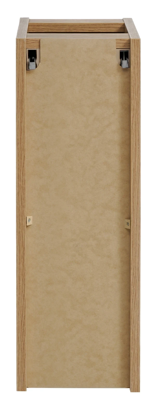 Szafka łazienkowa dolna NOVA OAK 20 cm z kolekcji mebli łazienkowych łączy w sobie styl i funkcjonalność, idealnie odpowiadając na potrzeby nawet najbardziej wymagających użytkowników. Szafka charakteryzuje się gładkimi frontami bez dodatkowych zdobień, co pozwala na pełne wyeksponowanie naturalnego piękna drewna. Wykonanie z płyty laminowanej o grubości 16 mm gwarantuje trwałość i estetykę. Szafka jest typu wiszącego, co umożliwia łatwiejsze utrzymanie porządku i higieny na podłodze. Szafka wyposażona została w dwie pojemne półki oraz system cichego domyku, co zwiększa komfort użytkowania. Mniejsza głębokość mebli z tej serii sprawia, że idealnie nadają się do mniejszych łazienek, jednocześnie nie tracąc na funkcjonalności. Metalowe uchwyty w połyskującym chromie dodają elegancji i są łatwe w czyszczeniu. Szafka jest częścią modułowej kolekcji NOVA OAK, co pozwala na elastyczne dopasowanie i integrację z innymi elementami serii, umożliwiając stworzenie spójnej i funkcjonalnej aranżacji przestrzeni.