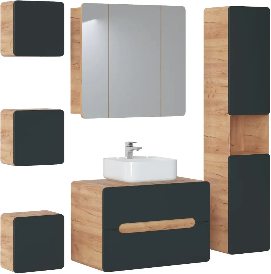 Szafka łazienkowa mała ARUBA szary cosmos / dąb craft złoty