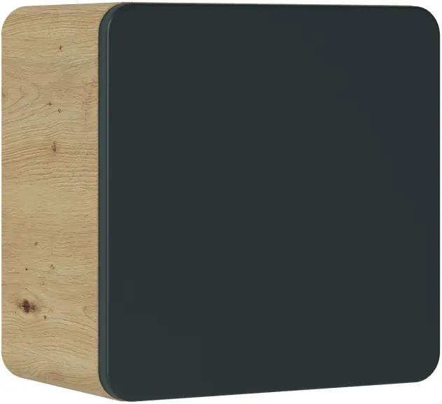 Szafka łazienkowa Aruba mała, o wymiarach 35x35 cm, to idealne rozwiązanie do nowoczesnych, mniejszych łazienek. Posiada jedną półkę wewnętrzną, co jest praktycznym rozwiązaniem do przechowywania różnorodnych akcesoriów łazienkowych. Jej nowoczesny charakter podkreślony jest przez eleganckie połączenie koloru szarego cosmos z płytą w kolorze dębu craft złotego, co tworzy atrakcyjny kontrast i dodaje wnętrzu wyrafinowanego stylu. Front szafki wykonany jest z płyty MDF, co gwarantuje trwałość i wysoką jakość wykończenia. Dodatkowo, zastosowanie mechanizmu cichego domyku zapewnia komfortowe i bezgłośne użytkowanie. Szafka ta stanowi część większej serii, co umożliwia dopasowanie i stworzenie spójnego wyglądu całej łazienki, łącząc inne meble z tej samej kolekcji.