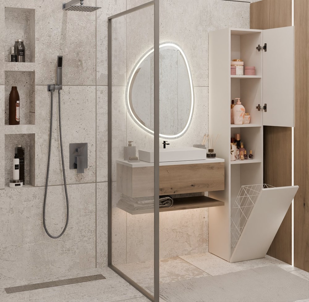 - Możliwość zmiany strony otwierania - górne drzwiczki można zamontować lewostronnie lub prawostronnie, dopasowując szafkę do układu łazienki.