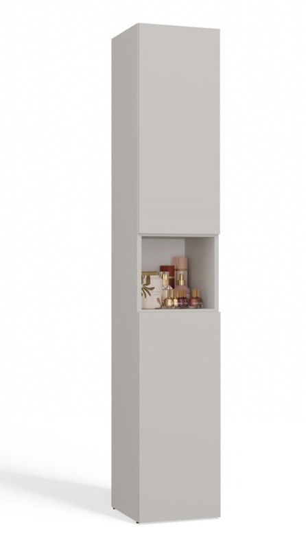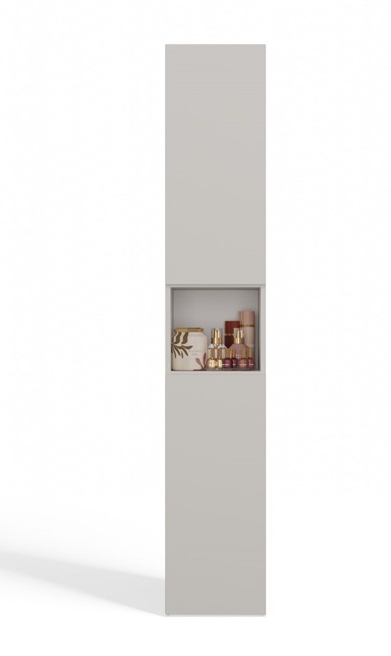 Szafka łazienkowa NEL III w kolorze kaszmir to elegancki i funkcjonalny mebel, który pozwala uporządkować każdą łazienkę z klasą. Jej smukła konstrukcja sprawia, że nie zajmuje dużo miejsca, a modny odcień beżu dodaje wnętrzu subtelnej elegancji i ciepła. To idealne rozwiązanie dla osób ceniących prostotę i nowoczesny design w połączeniu z praktycznością.