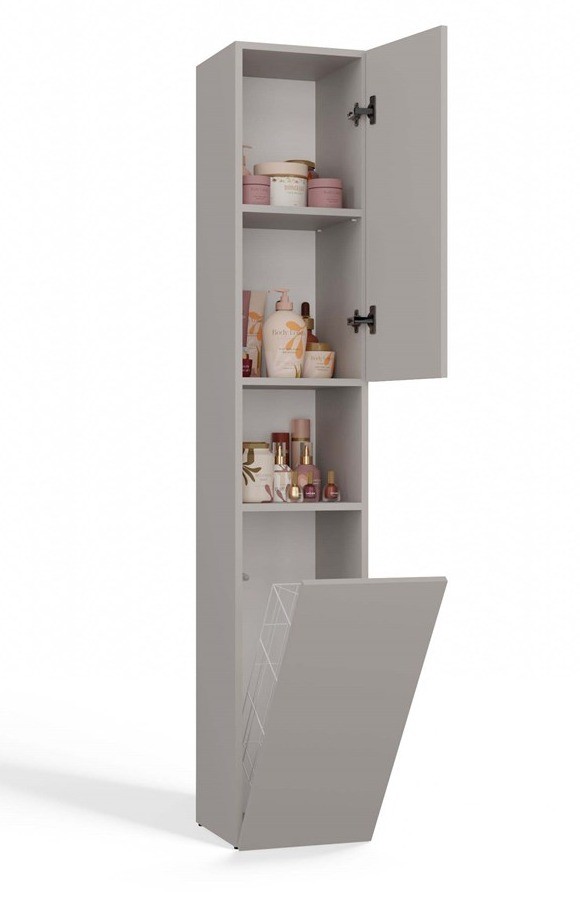 Szafka łazienkowa Nel III stojąca słupek z koszem na pranie 31 cm kaszmir