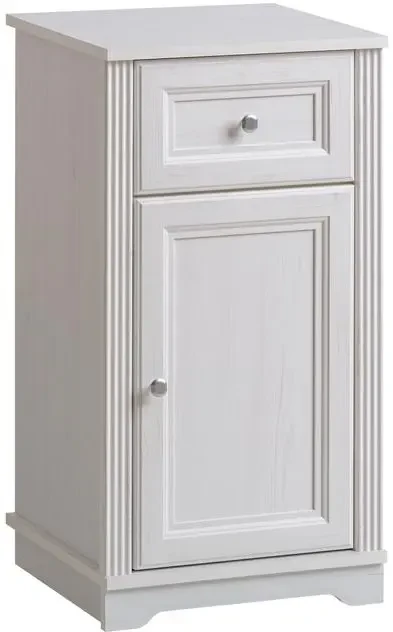 Szafka łazienkowa z kolekcji PALACE WHITE to elegancki mebel, który doskonale wpisuje się w klasyczne wnętrza. Posiada zabudowane drzwiczki, zapewniające dyskrecję przechowywania. Wewnątrz znajdują się dwie przestrzenie użytkowe, które sprawdzą się świetnie jaki miejsce do przechowywania ręczników, czy kosmetyków. Ponadto szafka została wyposażona w szufladę wyposażoną w prowadnicę rolkową dla łatwego dostępu. Metalowe uchwyty podkreślają elegancję mebla, a wykonanie z płyty laminowanej w kolorze biel Andresen gwarantuje trwałość i estetyczny wygląd.