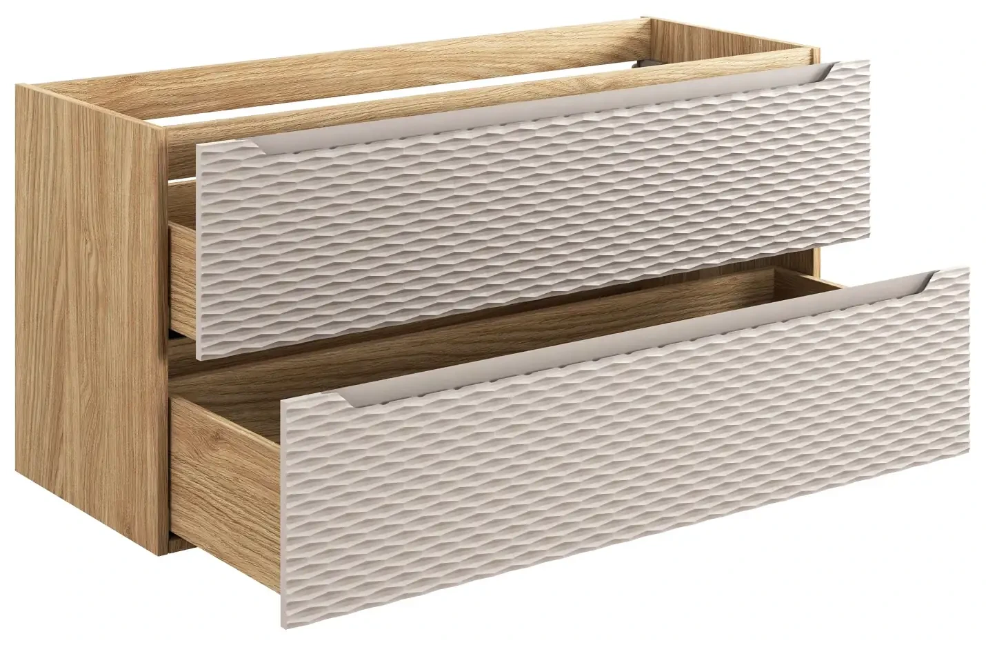 Szafka łazienkowa pod umywalkę 120 cm 2 szuflady OCEAN BEIGE beż + dąb olejowany