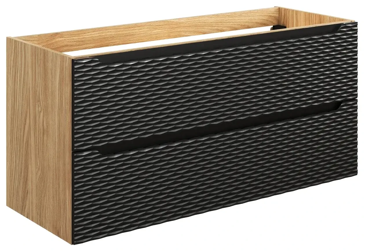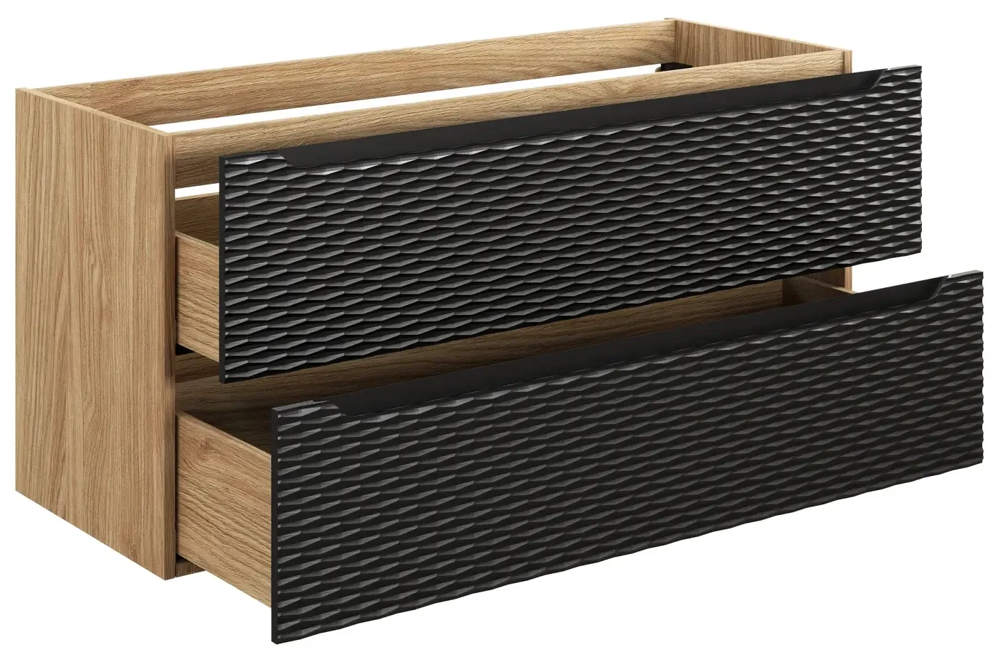 Szafka łazienkowa pod umywalkę 120 cm 2 szuflady OCEAN BLACK czarny + dąb olejowany