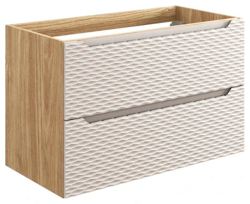 Szafka łazienkowa pod umywalkę 90 cm 2 szuflady OCEAN BEIGE beż + dąb olejowany