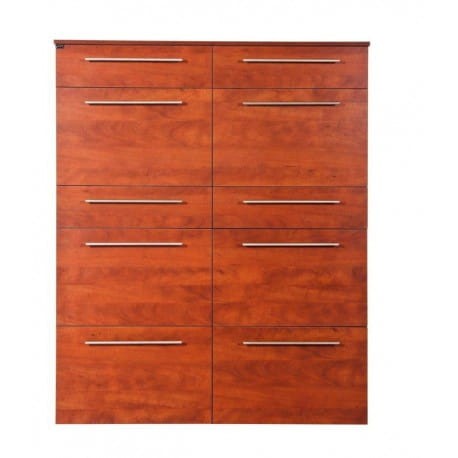 Aron to praktyczna i bardzo pojemna szafka na buty, która została zaprojektowana z myślą o niewielkich pomieszczeniach. Ten model posiada aż sześć pojemnych, dwurzędowych, metalowych koszy, które mieszczą do 6 par butów każdy. Dodatkowo w górnej i środkowej części mebla znajdują się 4 szuflady na drobiazgi, takie jak klucze czy pasta do butów. Takie rozwiązanie pozwala jeszcze lepiej zagospodarować dostępną przestrzeń do przechowywania obuwia w przedpokoju.