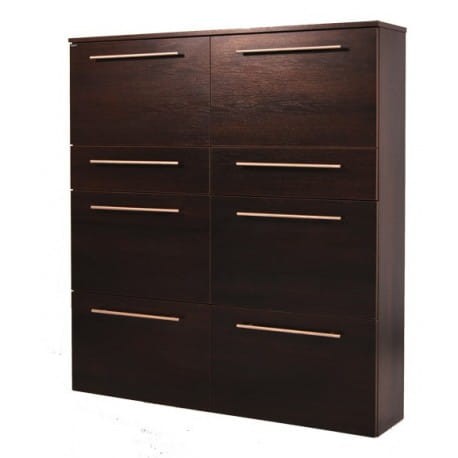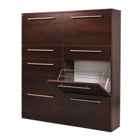 Arsen to bardzo pojemna i funkcjonalna szafka na buty, która zdolna jest pomieścić nawet 36 par obuwia. To produkt, który został zaprojektowany specjalnie z myślą o niewielkich przedpokojach. Pojemność tej szafki na buty pozwala na przechowywanie obuwia w jak największej ilości oraz sprytne zagospodarowanie dostępnego miejsca w przedpokoju. Szafka Arsen wyposażona jest w aż sześć dwurzędowych metalowych koszy. Każdy z nich może pomieścić do 6 par obuwia. W górnej części mebla znajdują się dwie szuflady otwierane na pełen wysuw. Jest to miejsce idealne na drobne przedmioty, takie jak rękawiczki lub klucze.