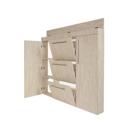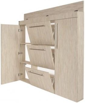 Asturia to praktyczna szafka na buty, która może pomieścić obuwie o różnej wysokości. Pojemność szafki to około 9 par obuwia. Produkt został zaprojektowany tak aby pomóc w zaoszczędzeniu jak największej ilości miejsca w przedpokoju przy jednoczesnym funkcjonalnym zagospodarowaniu przestrzeni przeznaczonej do przechowywania obuwia. Szafka na buty Asturia posiada aż trzy jednorzędowe kosze metalowe, które mieszczą po 3 pary butów każdy. W górnej części znajduje się schowek na drobne przedmioty, takie jak rękawiczki, pasty lub klucze. Schowek wyposażony jest w specjalny amortyzator umożliwiający ciche i wygodne zamykanie. Boczne części wyposażono w półki, na których swoje miejsce znajdą torebki lub wysokie obuwie.