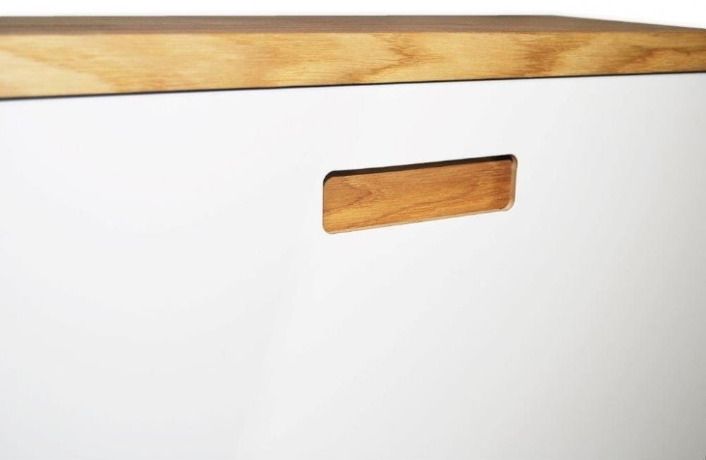- materiał: płyta akrylowa biały mat; obrzeża akryl biały mat; fornir dąb naturalny