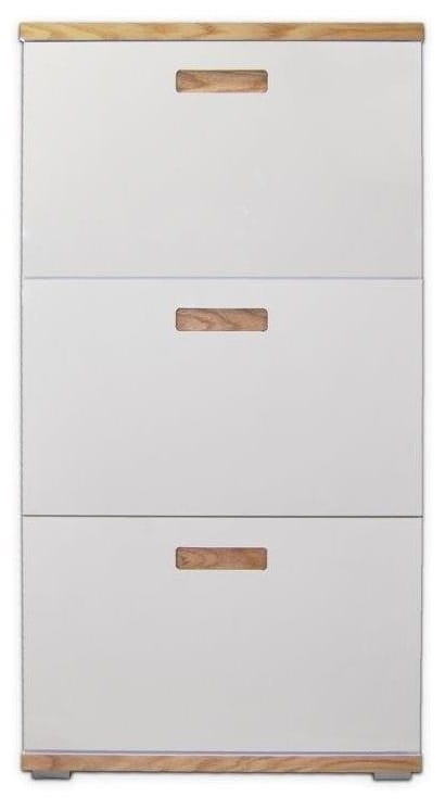 Szafka na buty Bueno złożona biały mat/dąb naturalny uchwyty wpuszczane