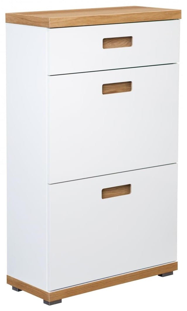 Szafka na buty Bueno z szufladą złożona biały mat/dąb naturalny