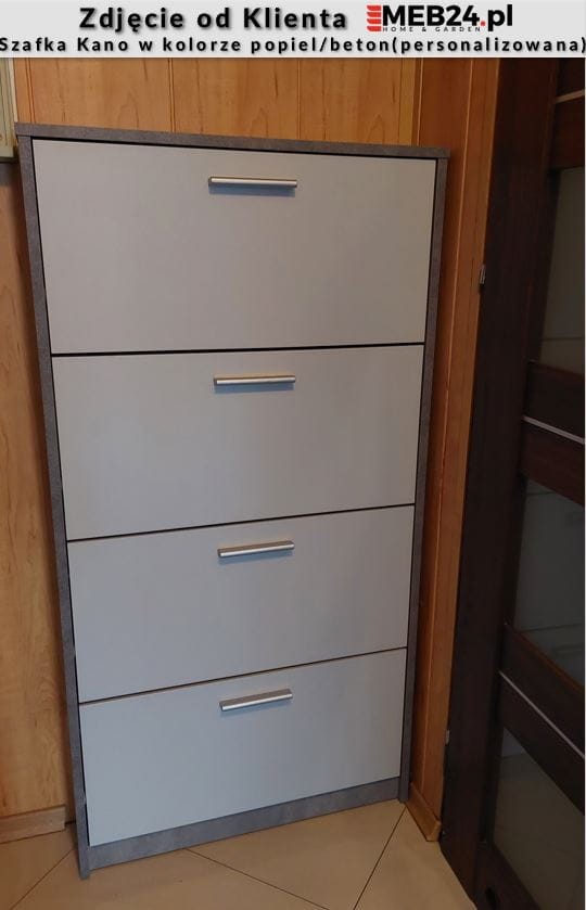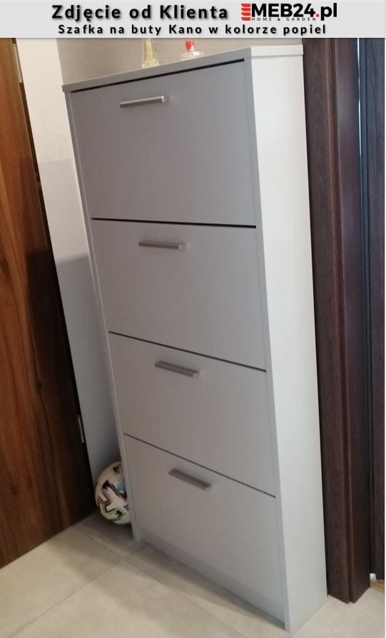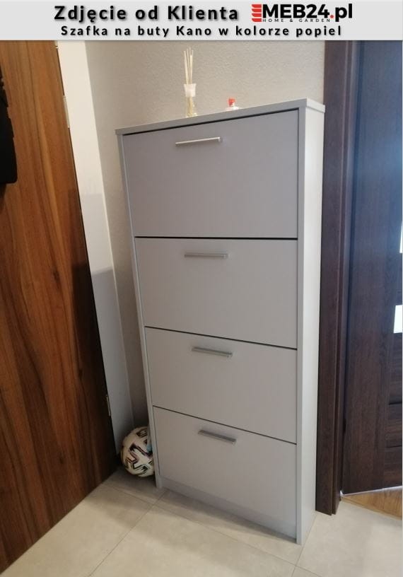 Kano to praktyczna szafka na buty, która jest zdolna pomieścić do 12 par butów. To produkt, który został stworzony specjalnie dla mało objętościowych pomieszczeń, takich jak korytarze i przedpokoje. Ta szafka do przechowywania obuwia pomaga zaoszczędzić miejsce nawet w niewielkim w przedpokoju. Posiada aż cztery jednorzędowe, plastikowe schowki na buty o pojemności do 3 par obuwia każdy.