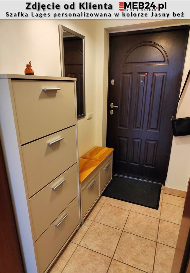 Lages to praktyczna i bardzo pojemna szafka, która jest zdolna pomieścić nawet 30 par obuwia. To produkt stworzony do przechowywania obuwia w dużej ilości nawet w małych pomieszczeniach. To szafka na buty, która pozwala zaoszczędzić dużo miejsca w przedpokoju. Szafka na buty Lages posiada pięć dwurzędowych, plastikowych schowków na obuwie, które są zdolne pomieścić do 6 par obuwia każdy. Mebel wykonany został z pogrubionej płyty laminowanej, której obrzeża zabezpieczone są okleiną PCV. Daje to gwarancję wysokiej jakości oraz standardu wykończenia a także długoletniego użytkowania. Szafka zaprojektowana i wykonana została w Polsce co jest gwarancją jakości - Wspieraj