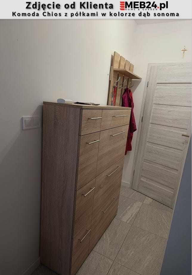 Za wysoką jakość odpowiada wykonanie tej szafki na buty z pogrubionej płyty laminowanej z obrzeżami, które zabezpieczone są okleiną PCV. Daje to gwarancję wysokiego standardu wykończenia oraz wieloletniego użytkowania. Szafka zaprojektowana i wykonana została w Polsce co jest gwarancją jakości - Wspieraj