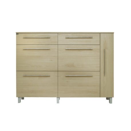 Garim to niezwykle praktyczna szafka na buty. Mebel został zaprojektowany specjalnie po to aby pomóc w zaoszczędzeniu jak największej ilości miejsca w przedpokoju przy jednoczesnej maksymalnej pojemności. Duża liczba dostępnych przestrzeni pozwala funkcjonalnie zagospodarować dostępną przestrzeń przeznaczoną do przechowywania obuwia. Szafka Garim wyposażona jest w cztery solidne dwurzędowe, metalowe kosze na obuwie. Każdy z koszy może pomieścić do 6 par obuwia. Z prawej strony mebla znalazł się słupek z półkami, które tworzą miejsce idealne dla wysokich butów lub torebek. Górna część to dwie pojemne szuflady na wszystkie podręczne przedmioty. Taka konstrukcja mebla, pozwala maksymalnie zagospodarować przestrzeń do przechowywania, przy minimalnym wykorzystaniu miejsca w przedpokoju.