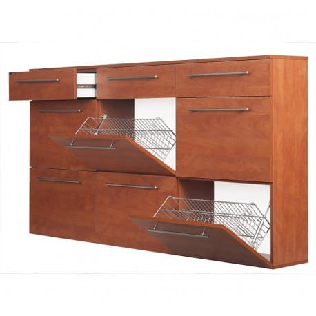 - praktyczne wymiary szafki oraz mnogość schowków (6 dwurzędowych stalowych koszy oraz 3 szuflady) pozwalają na przechowywanie do 36 par obuwia i innych rzeczy, przy minimalnym wykorzystaniu powierzchni