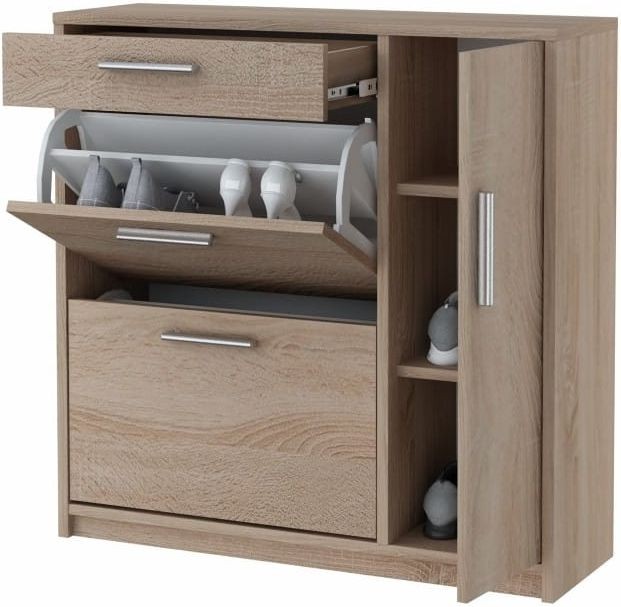 - pojemna szuflada oraz dwa dwurzędowe, plastikowe schowki na obuwie pozwalają dobrze zagospodarować przestrzeń i zaoszczędzić miejsce