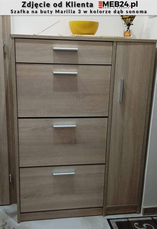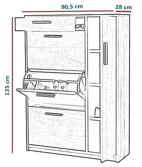 - trzy jednorzędowe schowki na obuwie, umożliwiają przechowywanie do 18 par obuwia