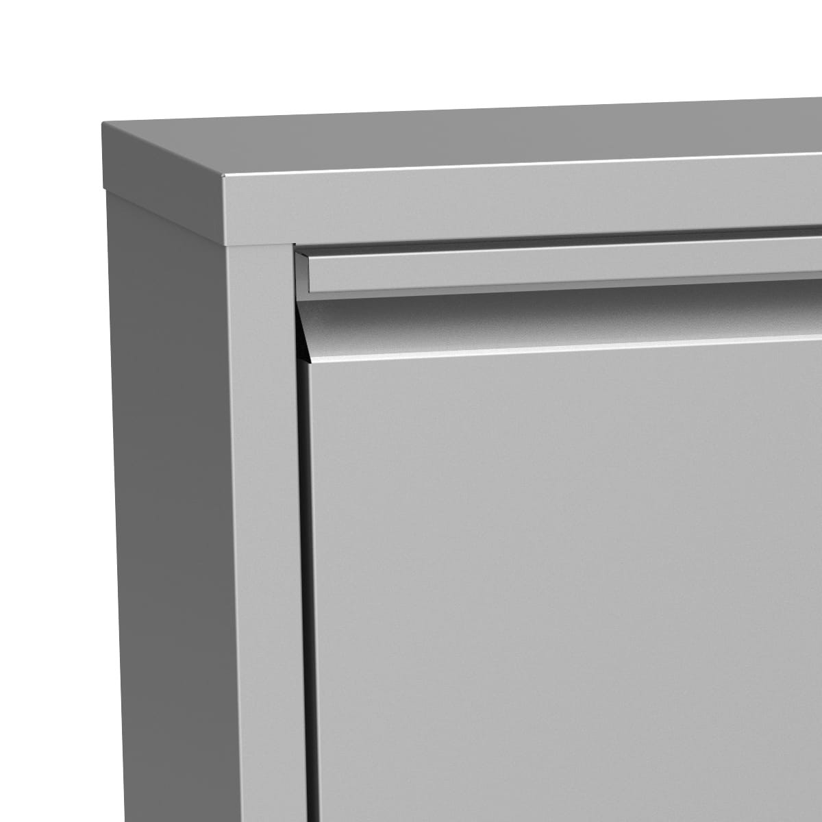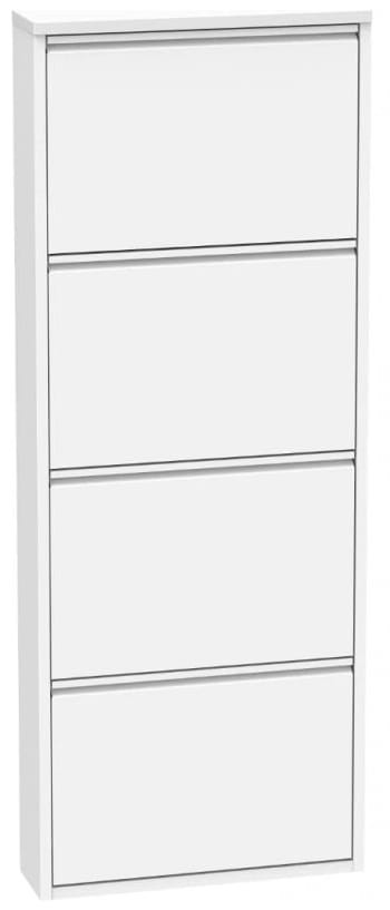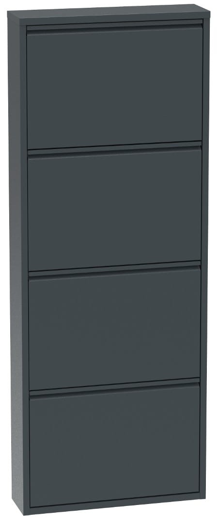 Home 4 to praktyczna i trwała szafka do przechowywania obuwia, która pozwala pomieścić około 12 par butów. Prezentowany model szafki na buty został stworzony po to, żeby dzięki jej kompaktowym wymiarom oraz możliwości zawieszenia zaoszczędzić miejsce w przedpokoju oraz pozwolić na funkcjonalne zagospodarowanie przestrzeni przeznaczonej na obuwie. Szafka wyposażona została w cztery uchylne klapy mieszczące po 3 pary obuwia każda. Dzięki minimalnej głębokości oraz możliwości jej zawieszenia zmieści się w wąskich przedpokojach zachowując pełnię funkcjonalności. Szafka została wykonana w całości z metalu i polakierowana na jeden z 3 dostępnych kolorów. Kolekcja Home zawiera lekkie i minimalistyczne bryły, które odnajdą się w każdym przedpokoju, są to szafka na buty, komoda, wieszak, lustro oraz szafa obrotowa.