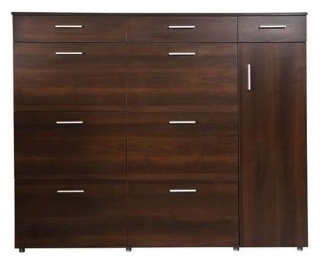 - praktyczne wymiary szafki oraz mnogość schowków i szuflad pozwala na przechowywanie do 41 par obuwia i innych drobiazgów, przy minimalnym wykorzystaniu miejsca w przedpokoju, co stanowi idealne rozwiązanie zarówno do większych, jak też mniejszych pomieszczeń