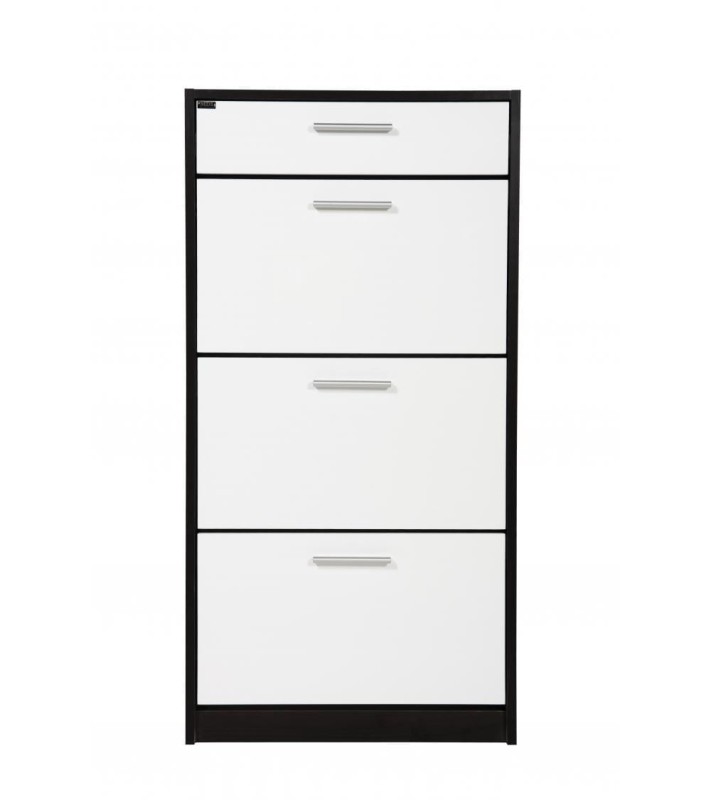 Rosario to pojemna i praktyczna szafka na buty w której zmieści się około 18 par obuwia. Stworzona została z myślą o niewielkich pomieszczeniach, gdyż jej niewielka głębokość pozwala na ustawienie jej nawet w wąskim przedpokoju, czy korytarzu. Rosario posiada trzy dwurzędowe, plastikowe kosze na obuwie zdolne pomieścić do 6 par butów każdy. Dodatkowe miejsce do przechowywania zapewnia szuflada na pełen wysuw przeznaczoną na wszystkie podręczne przedmioty, takie jak klucze czy dokumenty. Korpus szafki wykonano z płyty laminowanej, natomiast fronty z lakierowanej płyty MDF. Szafka zaprojektowana i wykonana została w Polsce co jest gwarancją jakości - Wspieraj