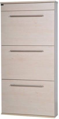 Szafka na buty Stanos ze schowkiem to model zaprojektowany specjalnie dla niewielkich pomieszczeń. To produkt, który pozwala zaoszczędzić jak najwięcej miejsca w przedpokoju przeznaczonego do przechowywania obuwia, przy jednoczesnej maksymalnej pojemności. Trzy solidne metalowe, dwurzędowe kosze na obuwie są w stanie pomieścić do 3 par butów każdy. Praktyczny schowek w górnej części mebla to miejsce idealne do przechowywania drobnych przedmiotów, takich jak klucze lub rękawiczki. Minimalna głębokość szafki pozwala na umieszczenie mebla nawet w wąskim korytarzu. Szafka na buty Stanos to mebel, który pomoże funkcjonalnie i praktycznie zagospodarować przestrzeń przeznaczoną na buty.