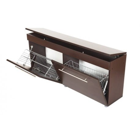 Bakol to nowoczesna szafka na buty z siedziskiem i schowkiem na drobne przedmioty. Szafka na buty została wyposażona w dwa stalowe dwurzędowe kosze, które zmieszczą łącznie do 12 par obuwia. Praktyczny schowek zapewnia dodatkowe miejsce do przechowywania np. środków do pielęgnacji obuwia. Siedzisko umożliwia komfortowe ściąganie i zakładanie butów (możliwość dokupienia miękkiej poduszki). Bogaty wybór kolorów sprawia że z powodzeniem dopasujesz ją do swojego wnętrza. Bakol to szafka wykonana z materiałów najwyższej jakości: pogrubiona płyta laminowana, obrzeża zabezpieczone PCV oraz metalowe kosze gwarantują użytkowanie mebla przez długie lata