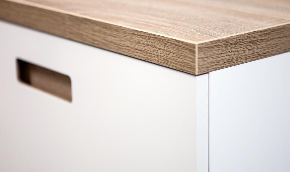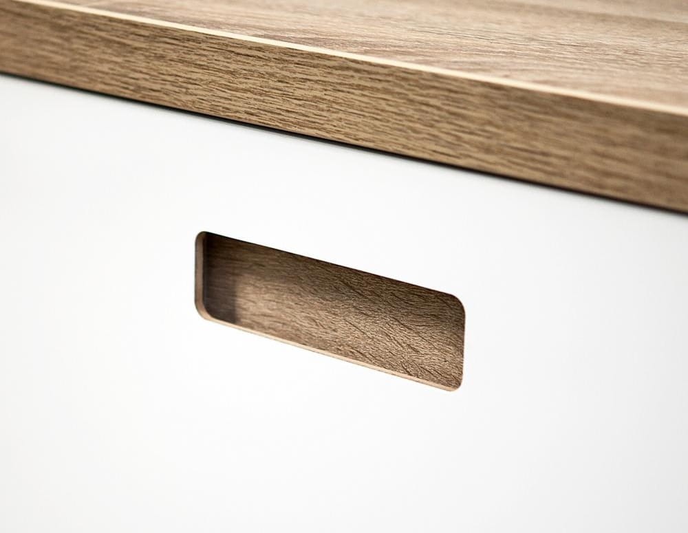 - materiał: płyta Akrylowa Biały Matowy, płyta laminowana Dąb sonoma, Obrzeża Akryl Biały Matowy