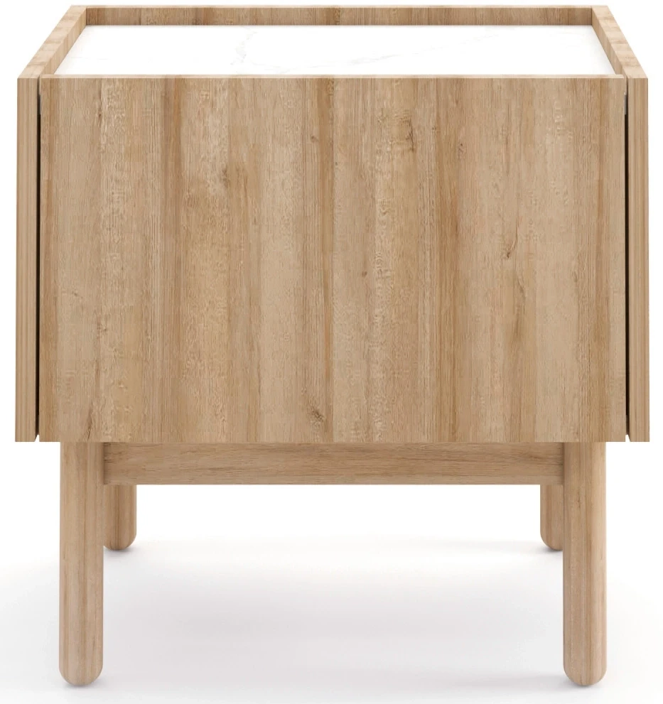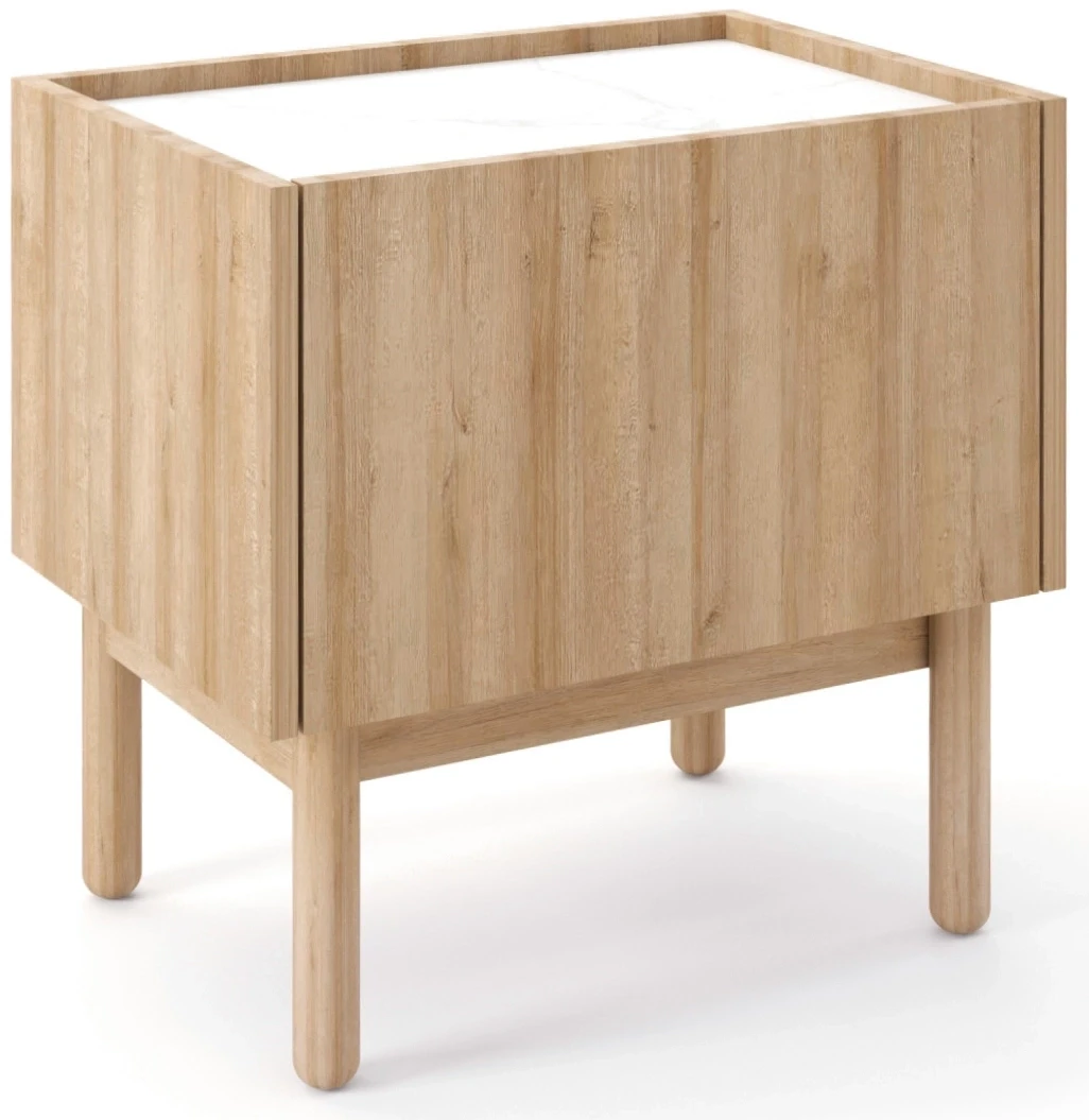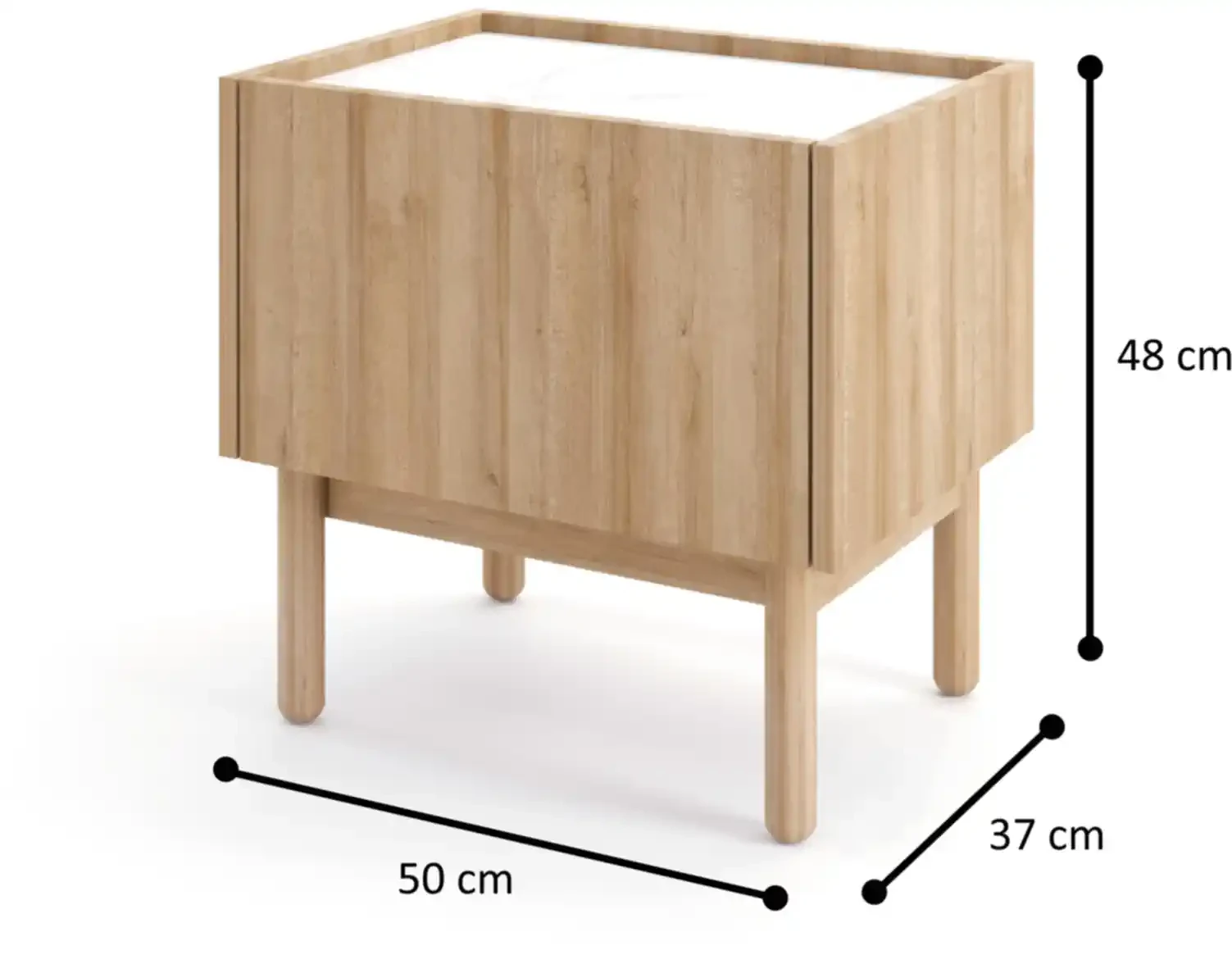 Szafka nocna Boho to bardzo praktyczny mebel do sypialni. Szafka nocna Boho została wyposażona w pojemną półkę za uchylnymi drzwiczkami, dzięki czemu świetnie sprawdzi się jako miejsce do przechowywania podręcznych rzeczy, takich jak ładowarka, czy książki. Szafka nocna Boho sprawdzi się zarówno w bardziej nowoczesnej sypialni, jak też takiej urządzonej bardziej w tradycyjnym stylu. Minimalistyczny design połączony delikatną kolorystyką bieli i dębu riviera sprawia, że komoda Boho prezentuje się niezwykle stylowo. Mebel został zaprojektowany i wykonany w Polsce co jest gwarancją jakości - Wspieraj